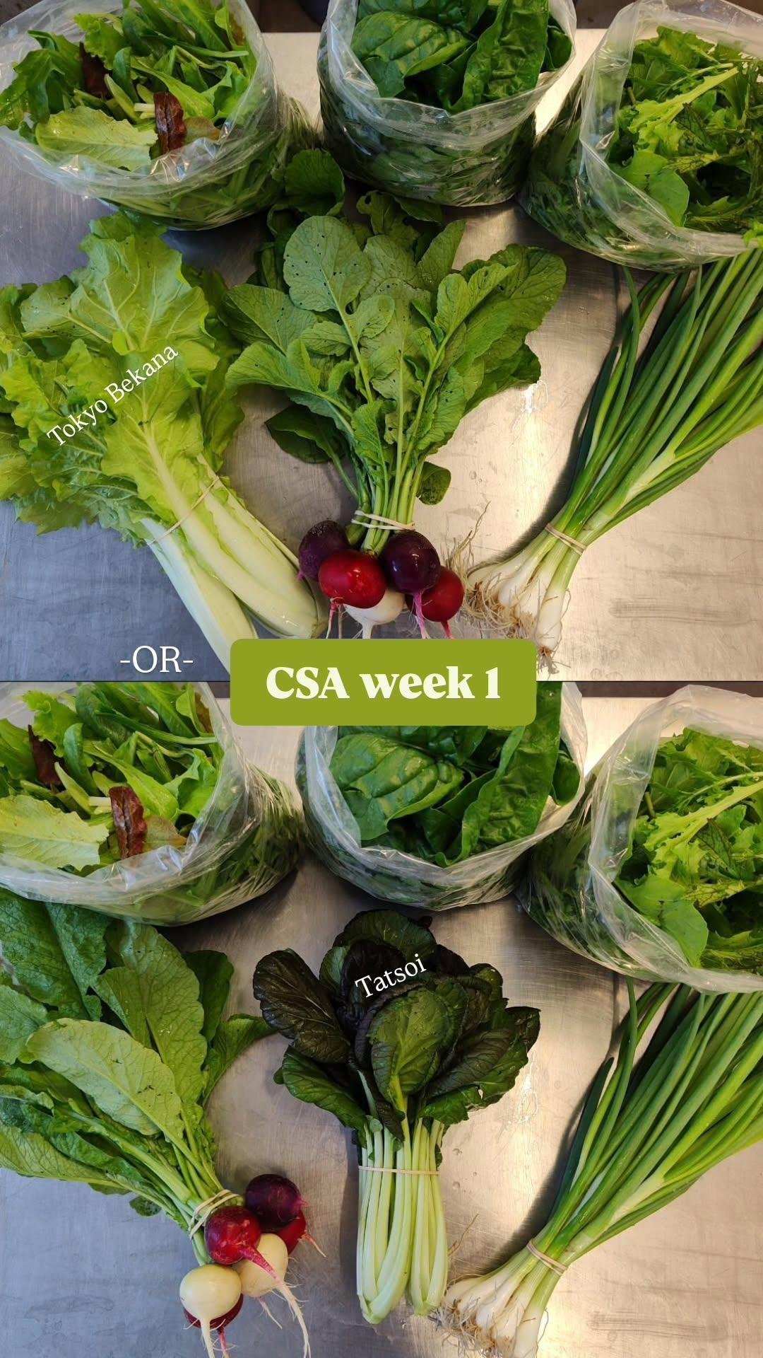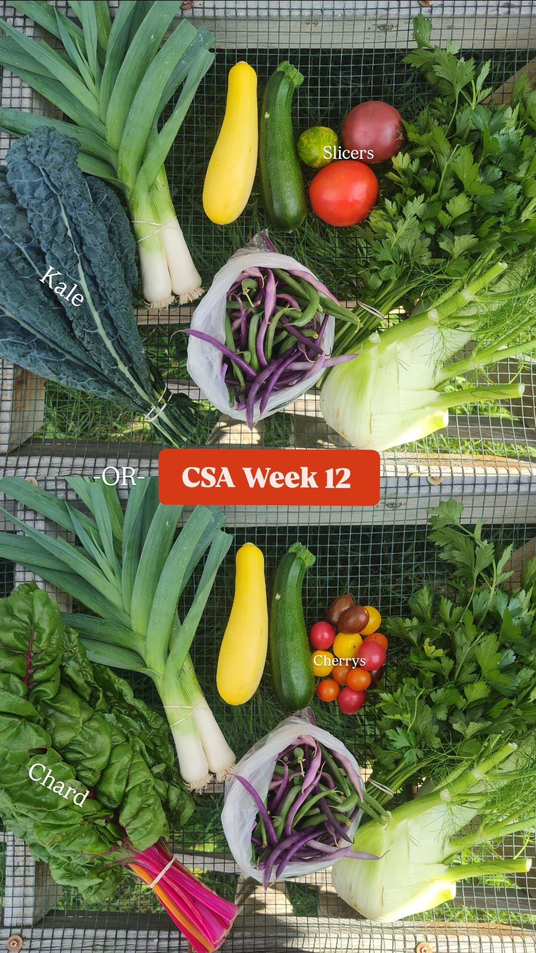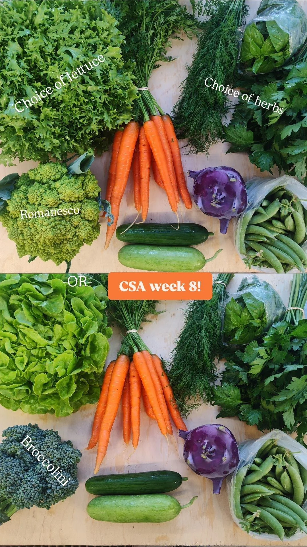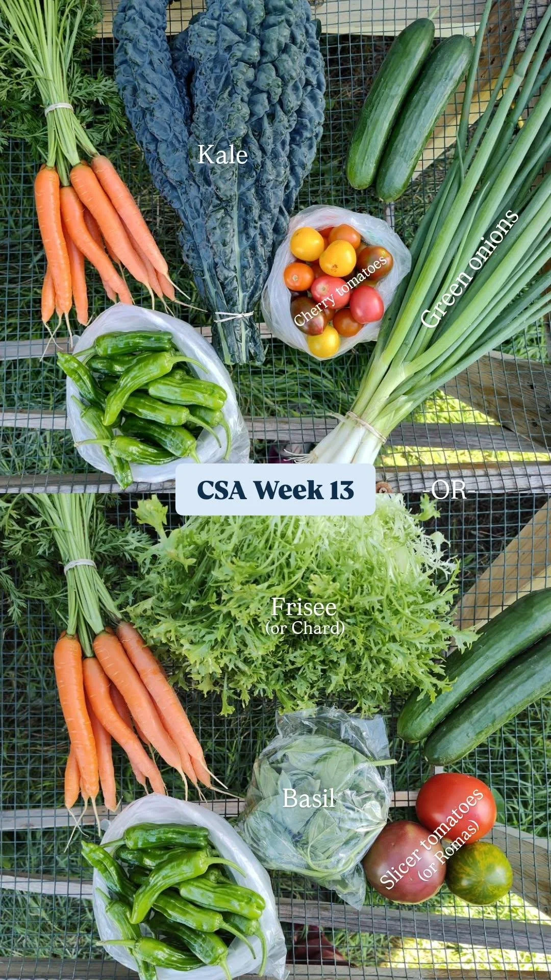 Shares are customizable with at least one item in the share being a “this or that” choice. (Example: you may pick either kale or chard, parsley or cilantro, radish or turnip)